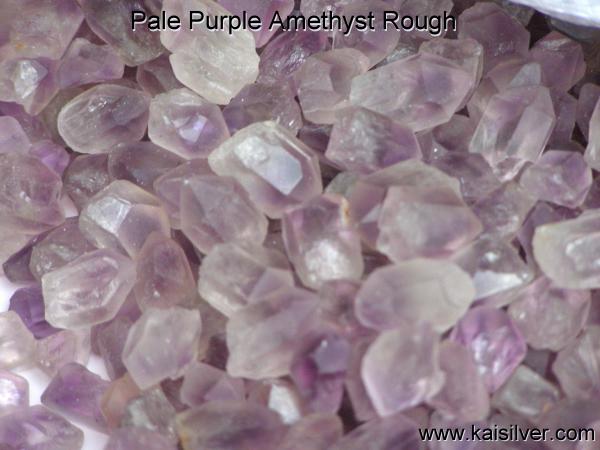 Now train your sight on any one of the pieces that you can see in the lot, observe the color of the rough gemstone. There is a 50% to 60% portion in each amethyst rough piece that has very little purple color or no color at all. Since amethyst is a variety of quartz, you could say that there is light purple and white quartz in each of the stones. Since colorless quartz is called white quartz and not amethyst, we would need to exclude that portion during the cutting process. This means that about half of the rough amethyst stone weight will be lost right at the beginning. As a general rule the weight loss from rough amethyst to final cut loose amethyst gemstones is around 80% to 90%. High end gem and jewelry providers like www.kaisilver.com and www.directstones.com incur even higher weight losses. This is mainly due to stringent quality control standards. A quick mathematical calculation would tell you that, if you need a 5 carat amethyst gemstone that is cut and polished, you would start off with a rough amethyst stone that is around 50-60 carats large. If you insist on gettting an eyel clean amethyst gem with no inclusions or fissures, you might need a rough gem that is at least 70-80 carats in size.