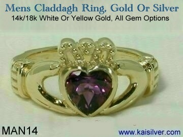 Another interesting question that is often asked about claddagh rings is whether, men can wear a claddagh ring. The answer is surely in the affirmative. Kaisilver produces mens claddagh rings in gold and sterling silver. You can ofcourse choose a gem stone mens claddagh ring or a claddagh ring for men with a gem stone.