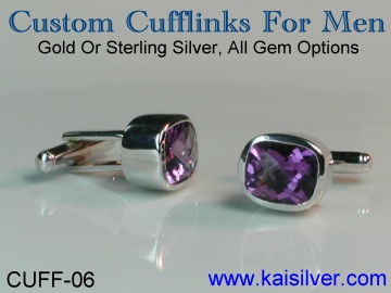 While cufflinks are generally worn for their utility value, recent years have seen men become more demanding for style and quality when buying cufflinks. At Kai Silver we custom make both gold and sterling silver cufflinks, the design and gem selection is all up to you ... more.