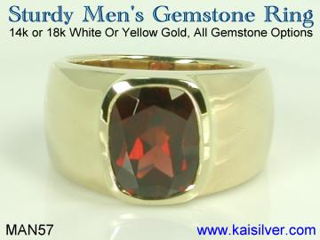 The MAN57 has been one of the most popular Kaisilver mens rings. This ring packs in a metal weight of 25 to 30 grams making it one of the sturdiest men's ring that you will every find. Available in gold or silver, with all gem stone options. ... more.