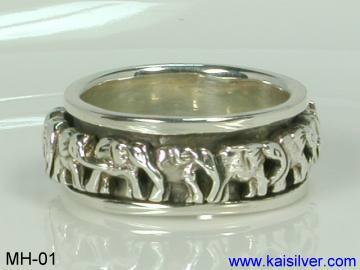 A very unique mens wedding band in sterling silver. Once again durability has been built into this awesome custom made silver wedding band ring. The elephants can be replaced with other animals, symbols etc. ... more.