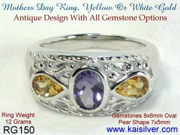 The RG150 has been one of Kaisilver's hottest selling ring. The ring shown here is a sterling silver mother's ring with three gem stones of your choice. Customization ensures that you can choose gold or silver for your ring. ... more.